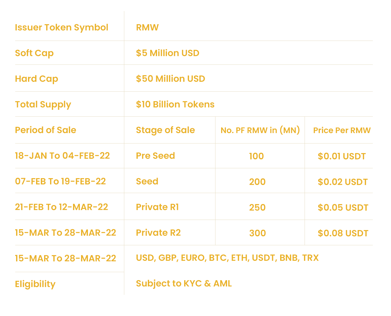 Simply click on the “BUY RMW” button on our website. The Richmint-World tokens can be purchased using either Cryptocurrencies like BTC, ETH, BNB, USDT, or with Fiat currency. Master-Card and Visa-Card options are also available on our website.